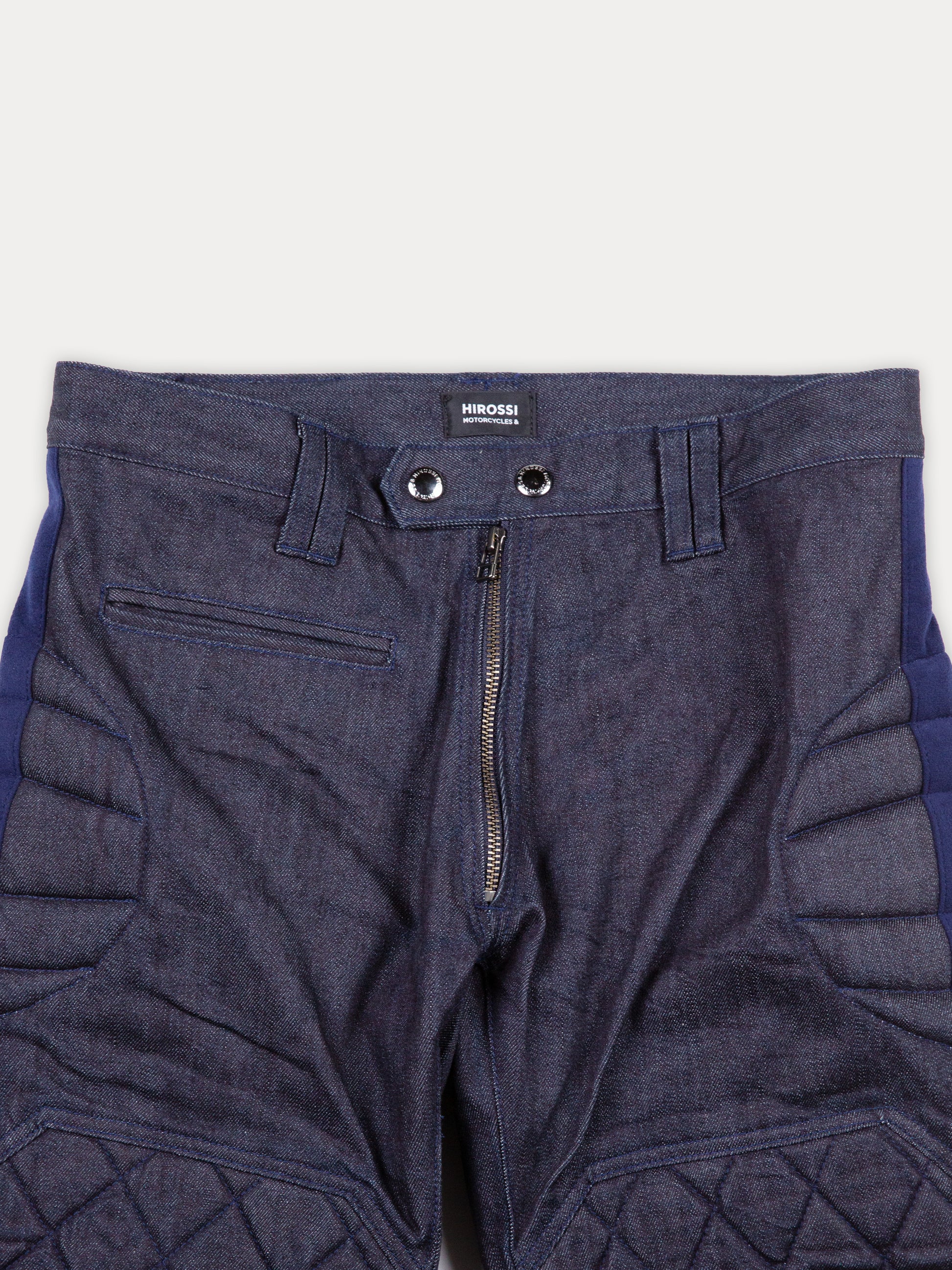 1960年代のモトクロスレースで穿かれていたレザーパンツをモデファイして、丈夫で美しいジャパンデニムで仕上げたMX Racing Pants。ビンテージとコンテンポラリーのカジュアルなバランスが、どのようなセットアップやバイクにも合わせやすいテイストです。