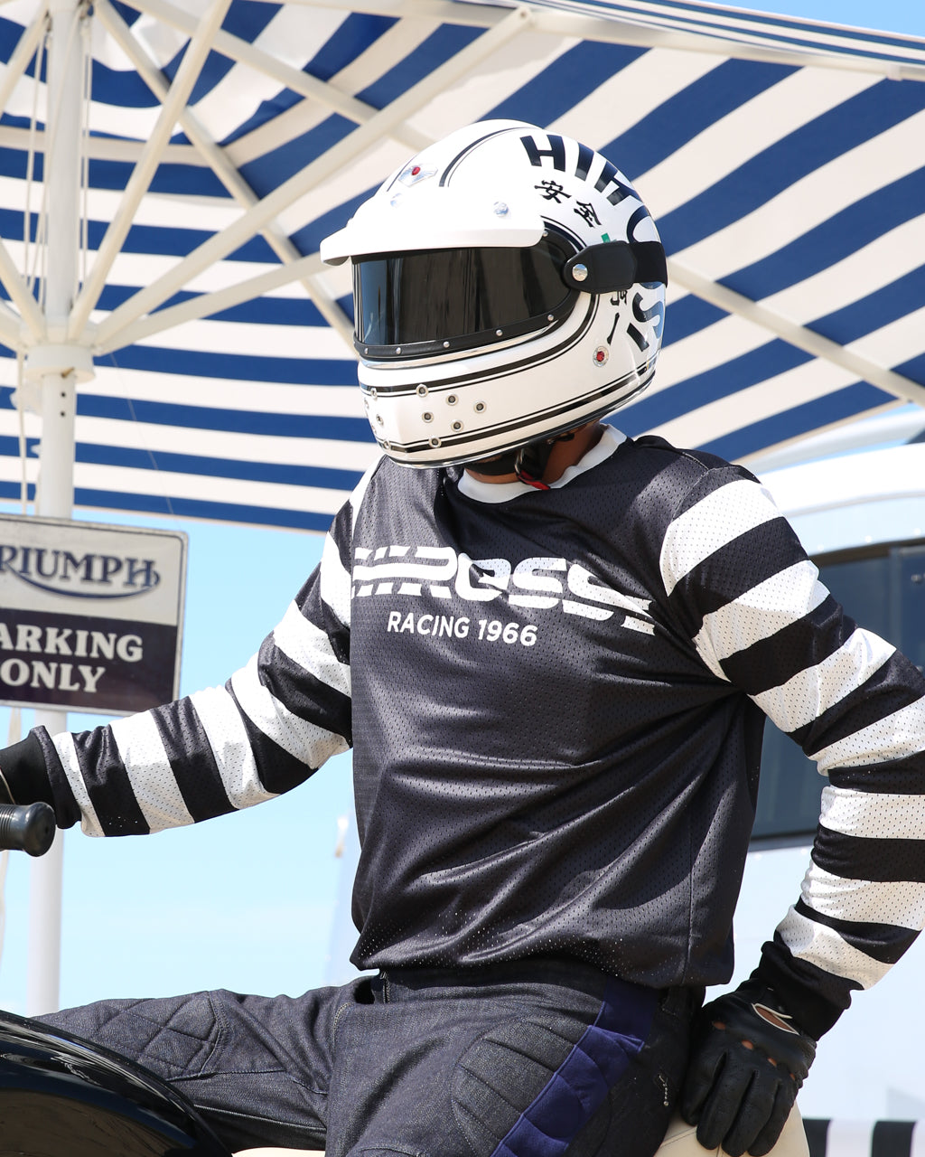 1960年代をイメージしたオリジナルデザインのメッシュジャージです。競技コースでの使用はもちろん、林道ツーリングやアドベンチャーバイクとの相性もとても良いです。
